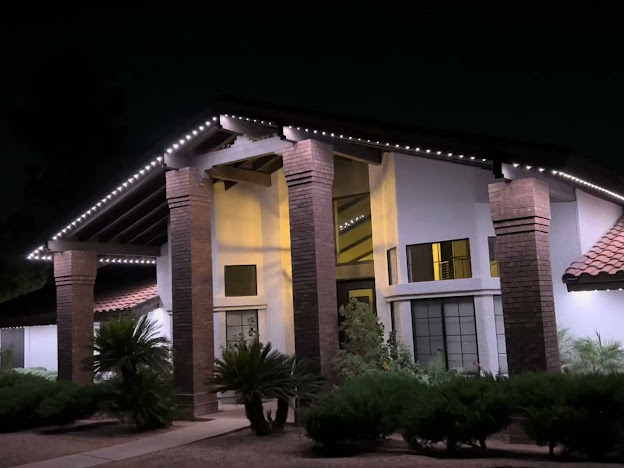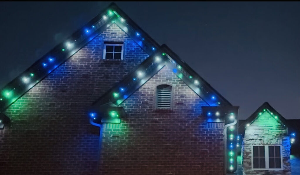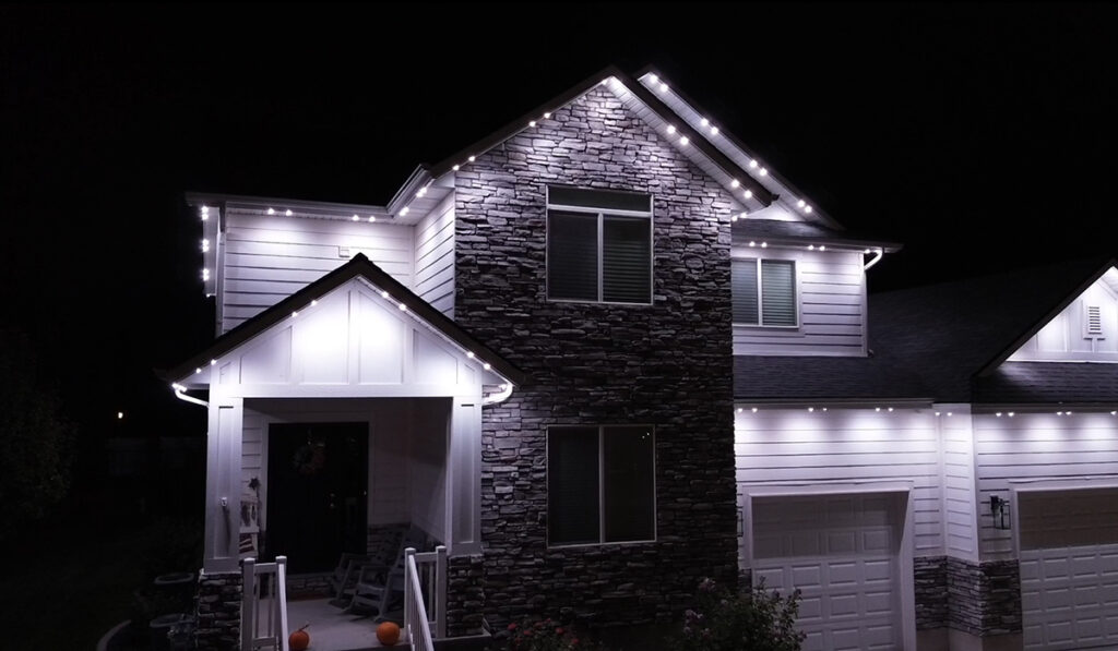 Permanent lighting is a weatherproof, low-profile LED lighting system installed along your roofline or architectural features—designed to stay up year-round without maintenance.